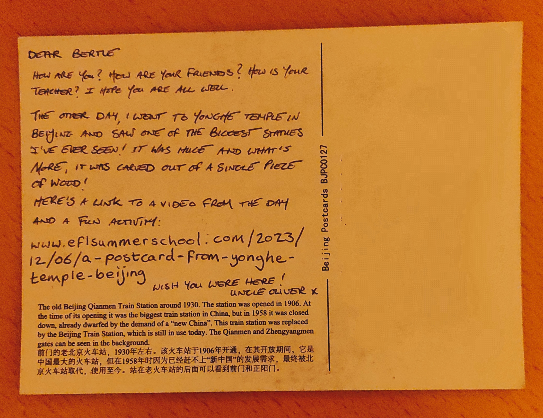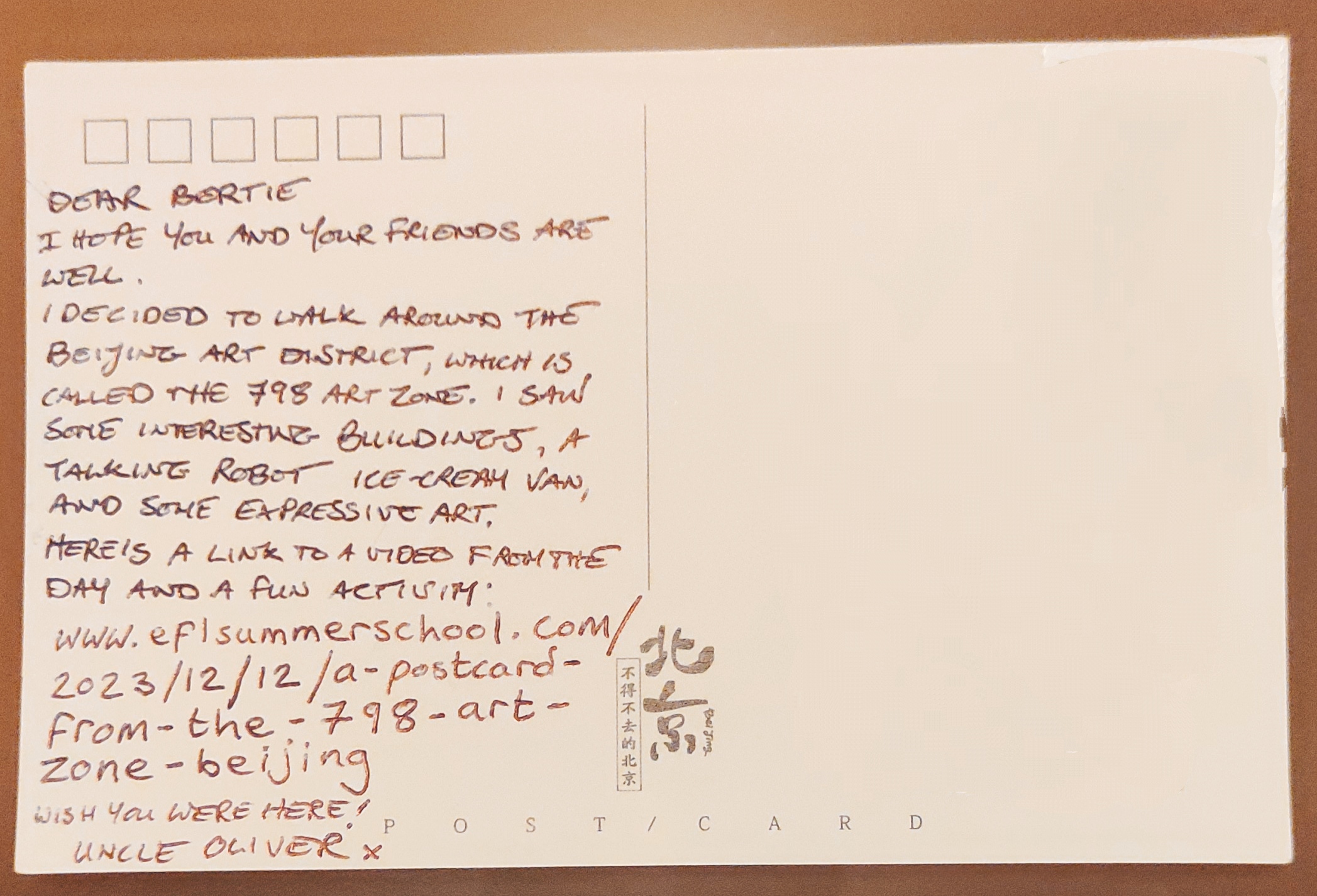 Of course there was no obligation for his teacher to engage with any of the content. My intentions were never to hijack anyone’s class – teaching by stealth – rather it opened the opportunity to broaden the target audience if any of the themes correlated with what they were doing when each postcard was delivered. If they didn’t, and the postcards were simply handed over, they provide easy self-access materials for a boy who needs something to do on a wet Sunday afternoon.