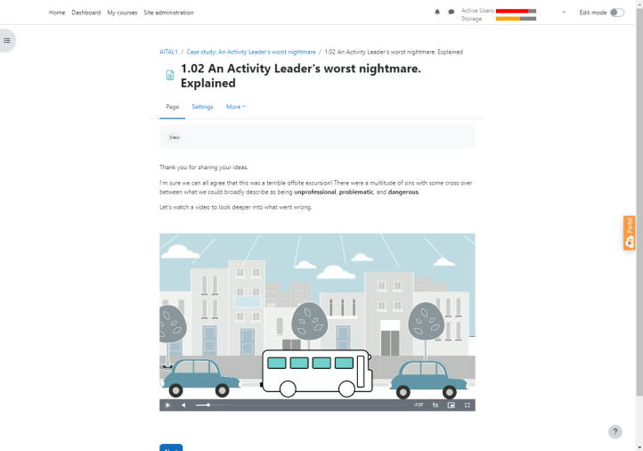 Activity Leaders are employed to lead onsite activities and offsite excursions. The basis of this course revolves around a series of animated explainer videos in the form of two case studies – one for onsite activities and the other offsite excursions.
