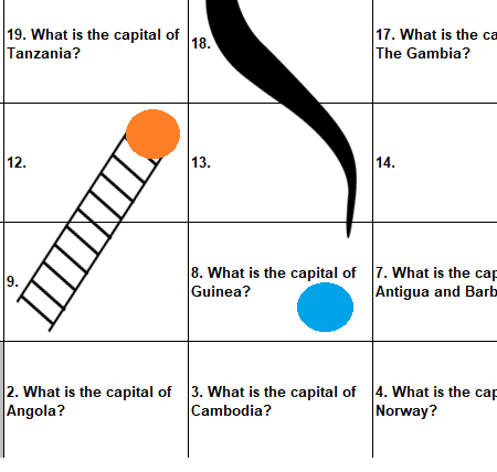 Snakes and ladders generator: world capital cities